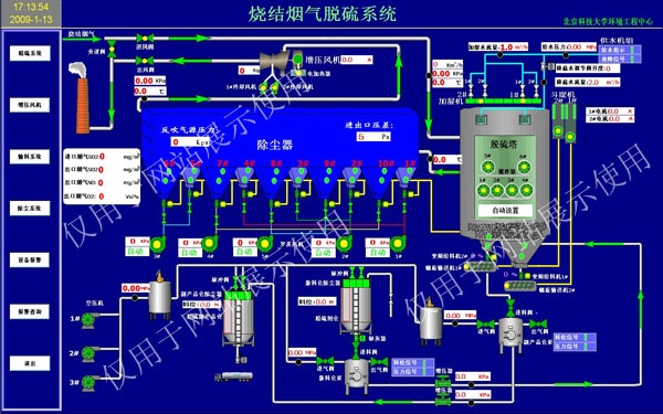 煙氣脫硫控制系統(tǒng)。該系統(tǒng)可根據(jù)企業(yè)不同煙氣溫濕度及二氧化硫氮氧化物等成分不同的實(shí)際工況,通過算法優(yōu)化控制方法,提高脫硫系統(tǒng)的自動化程度,在保證脫硫效率的前提下,降低原材料和能源的消耗,降低脫硫系統(tǒng)的運(yùn)行成本。