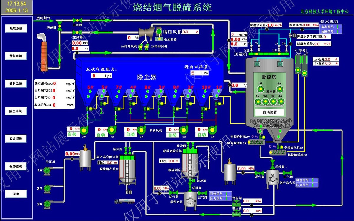 煙氣脫硫控制系統(tǒng)。該系統(tǒng)可根據(jù)企業(yè)不同煙氣溫濕度及二氧化硫氮氧化物等成分不同的實(shí)際工況,通過(guò)算法優(yōu)化控制方法,提高脫硫系統(tǒng)的自動(dòng)化程度,在保證脫硫效率的前提下,降低原材料和能源的消耗,降低脫硫系統(tǒng)的運(yùn)行成本。
